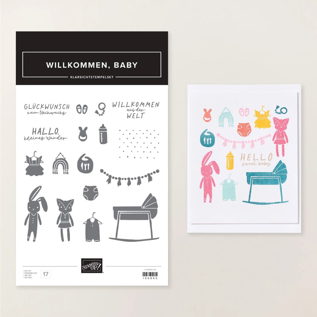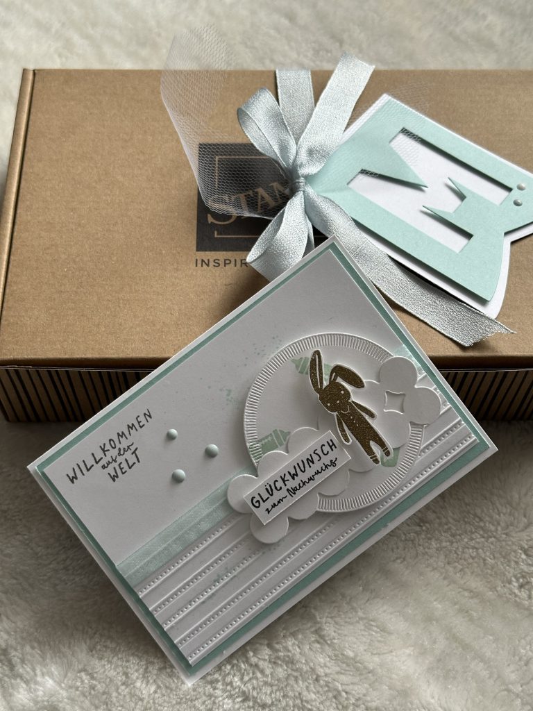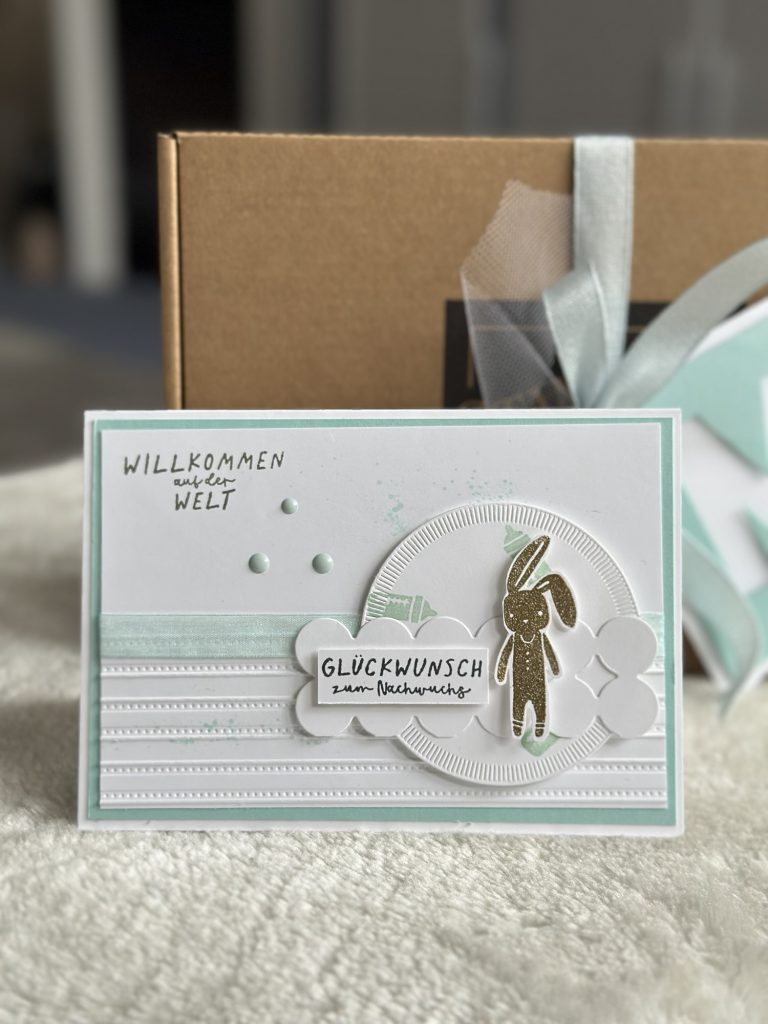 Nicht nur in der Natur, auch im Bastelstübchen ging es diese Woche kreativ zu. Eine Babykarte mit dem neuen Stampin’Up! Set WILLKOMMEN BABY ist entstanden. Und ich finde den Hasen einfach so niedlich. Diesen habe ich embossed und somit wirkt er gleich als besonderer Hingucker.
